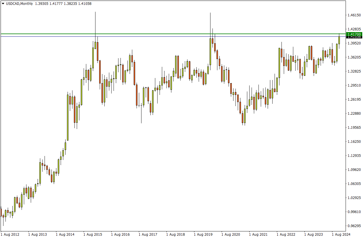 USDCAD Monthly 来源:FXTM富拓MT4平台